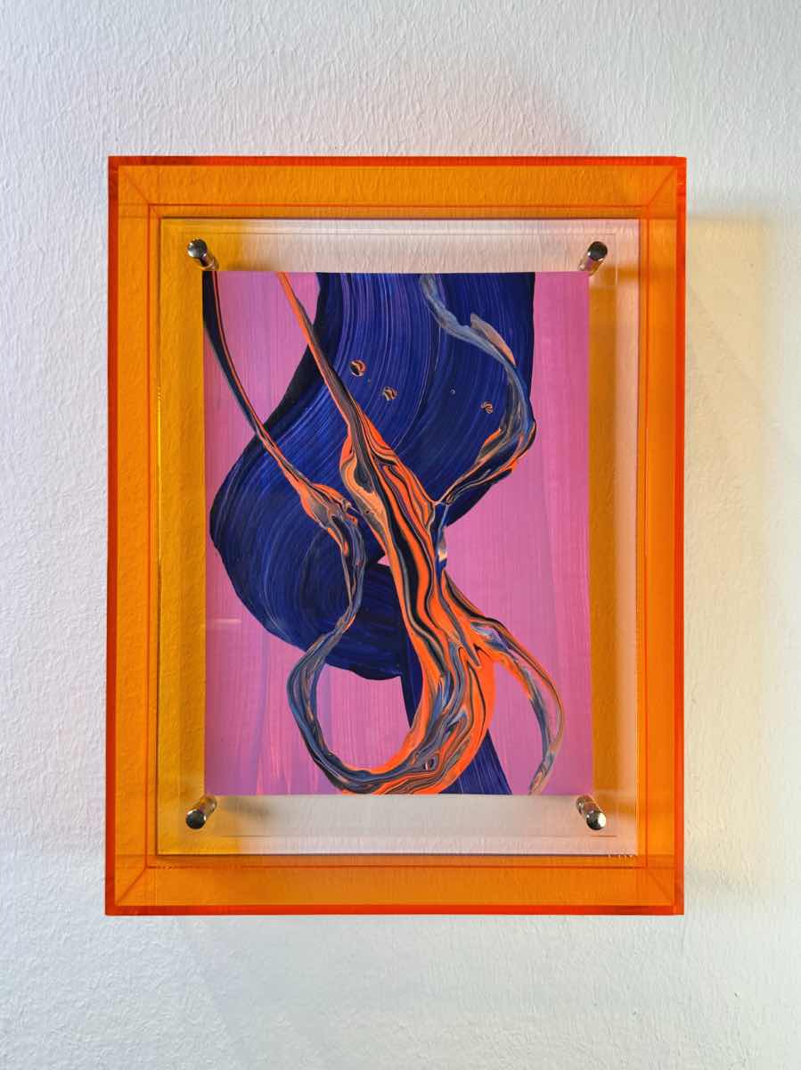 Acryl auf Papier in orangen Acrylrahmen  pink / orange
